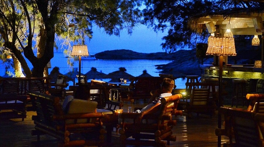 An all-day bar and restaurant right on Koundouros Beach, inside the Porto Koundouros hotel. The wooden deck offers a stylish setting to refuel after a day of swimming — Mediterranean dishes, fresh grilled fish, meat from the island, and a solid cocktail menu. The perfect place to stretch a beach day into a sunset dinner without changing out of your sandals.